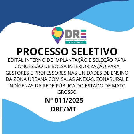 O(A) DIRETOR (A) DA DIRETORIA REGIONAL DE EDUCAÇÃO DE ALTA FLORESTA MT, no uso de suas atribuições legais, torna pública a abertura de inscrições para seleção de profissionais da Rede Estadual de Ensino de Mato Grosso, na conformidade da Instrução Normativa Nº 012/2024/SEDUC/MT e da Portaria N° 1.138/2024/GS/SEDUC/MT, para implantação e concessão de bolsa interiorização para os profissionais da rede estadual educação efetivos ou