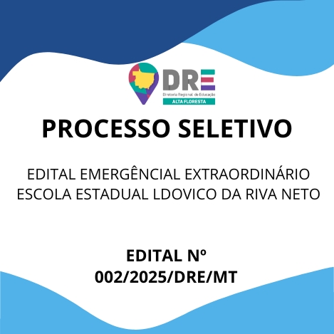 O(A) DIRETOR (A) DA DIRETORIA REGIONAL DE EDUCAÇÃO DE ALTA FLORESTA MT, no uso de suas atribuições legais, torna pública a abertura de inscrições para seleção de profissionais da Rede Estadual de Ensino de Mato Grosso, na conformidade da Instrução Normativa Nº 012/2024/SEDUC/MT e da Portaria N° 1.138/2024/GS/SEDUC/MT, para o cargo de Professor da Educação Básica com licenciatura na disciplina de Matemática e História. Conforme necessidade.