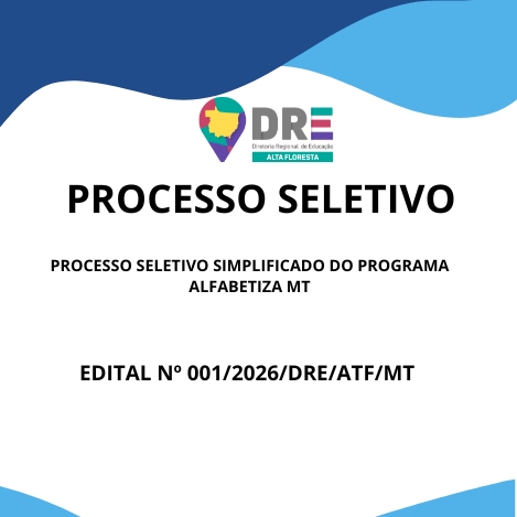 O DIRETOR DA DIRETORIA REGIONAL DE EDUCAÇÃO DE ALTA FLORESTA, no uso de suas atribuições legais, e, considerando o que dispõe a Lei Complementar nº 50 de 01/10/98, Lei Complementar nº 04 de 15/10/90, o Decreto nº 1497 de 10/10/2022, a Lei Complementar nº 756 de 14/02/2023 e o Decreto nº 256 de 05/05/2023, torna públicas, por meio deste EDITAL COMPLEMENTAR de SELEÇÃO, as normas e instruções para a realização de Processo Seletivo – PSS/2024, destinadas à seleção de servidores para exercerem o cargo de Articulador Regional do Programa Alfabetiza MT. As inscrições ocorrerão a partir do dia 06/01/2026 até às 23:59h do dia 12/01/2026, somente através do site eletrônico da Diretoria Regional de Educação – DRE: https://drealtafloresta.com.br/drealtafloresta/. Com envio do formulário de inscrição através do e-mail: atf.dre@edu.mt.gov.br