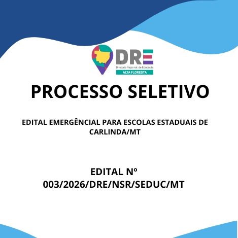 A DIRETORIA REGIONAL DE EDUCAÇÃO, MUNICÍPIO DE ALTA FLORESTA/MT, no uso de suas atribuições legais, considerando a Lei Complementar nº 04 de 15 de outubro de 1990, a Lei Complementar nº 50 de 1° de outubro de 1998, e a necessidade de recompor o quadro de servidores para substituições aos afastamentos legais no município de CARLINDA/MT, torna público o presente Edital Emergencial, que estabelece as normas e instruções para a realização de Processo Seletivo Simplificado – PSS, destinado à formação de cadastro de reserva para contratação temporária, por tempo determinado, para o cargo de Apoio Administrativo Educacional, Técnico administrativo Educacional e Professor