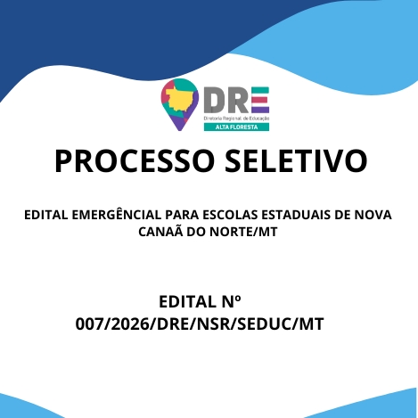A DIRETORIA REGIONAL DE EDUCAÇÃO, MUNICÍPIO DE ALTA FLORESTA/MT, no uso de suas atribuições legais, considerando a Lei Complementar nº 04 de 15 de outubro de 1990, a Lei Complementar nº 50 de 1° de outubro de 1998, e a necessidade de recompor o quadro de servidores para substituições aos afastamentos legais no município de NOVA CANAÃ DO NORTE /MT, torna público o presente Edital Emergencial, que estabelece as normas e instruções para a realização de Processo Seletivo Simplificado – PSS, destinado à formação de cadastro de reserva para contratação temporária, por tempo determinado, para o cargo de Apoio Administrativo Educacional, Técnico administrativo Educacional e Professor