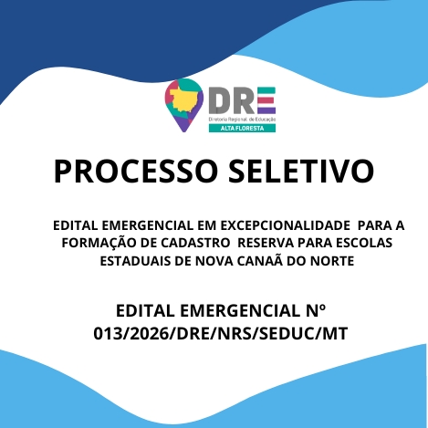 A DIRETORIA REGIONAL DE EDUCAÇÃO, MUNICÍPIO DE ALTA FLORESTA/MT, no uso de suas atribuições legais, considerando a Lei Complementar nº 04 de 15 de outubro de 1990, a Lei Complementar nº 50 de 1° de outubro de 1998, e a necessidade de recompor o quadro de servidores para substituições aos afastamentos legais no município de ALTA FLORESTA/MT, torna público o presente Edital Emergencial, que estabelece as normas e instruções para a realização de Processo Seletivo Simplificado – PSS, destinado à formação de cadastro de reserva para contratação temporária, por tempo determinado, para o cargo de Apoio Administrativo Educacional, Técnico administrativo Educacional e Professor